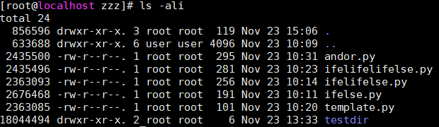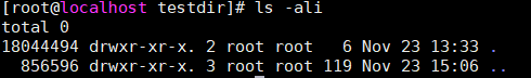 drwxr-xr-x. 2 root root 6 Nov 23 13:33 testdir