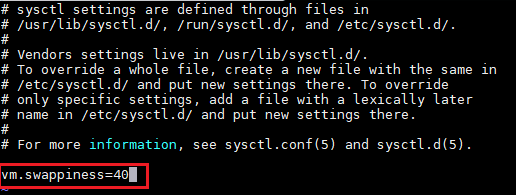 /etc/sysctl.conf 파일에서 vm.swappiness 설정을 추가 해줘야 함.