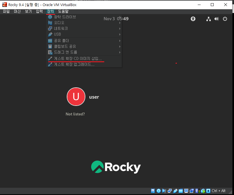 OS 부팅 후, 게스트 확장 CD 이미지 삽입